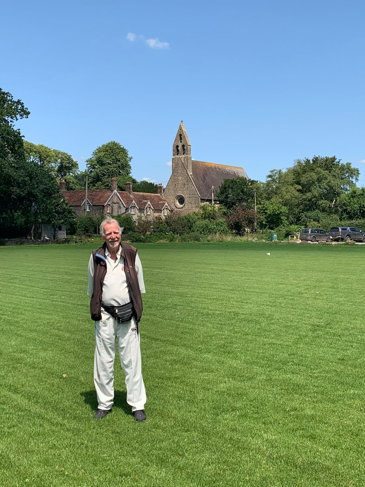 With the fondly-remembered Witham Friary tea not available this year due to Covid, White Viv and Despicable Johnny Griffiths strode to the middle a few pounds lighter than expected. Griffiths showed early promise with two crisply-hit twos, supplemented by a mounting number of byes. But the running between the wickets quickly took its toll on White Viv, who became the second player to retire after suffering dizzy spells. Terrence Collis joined JG and the pair had the scoreboard ticking over until Grifffiths was caught by a fine catch at short extra cover. Ben Sheriff and Terrence soldiered on, scoring the hard way under the scorching sun – in ones and twos – before Terrence fell lbw on 8.W