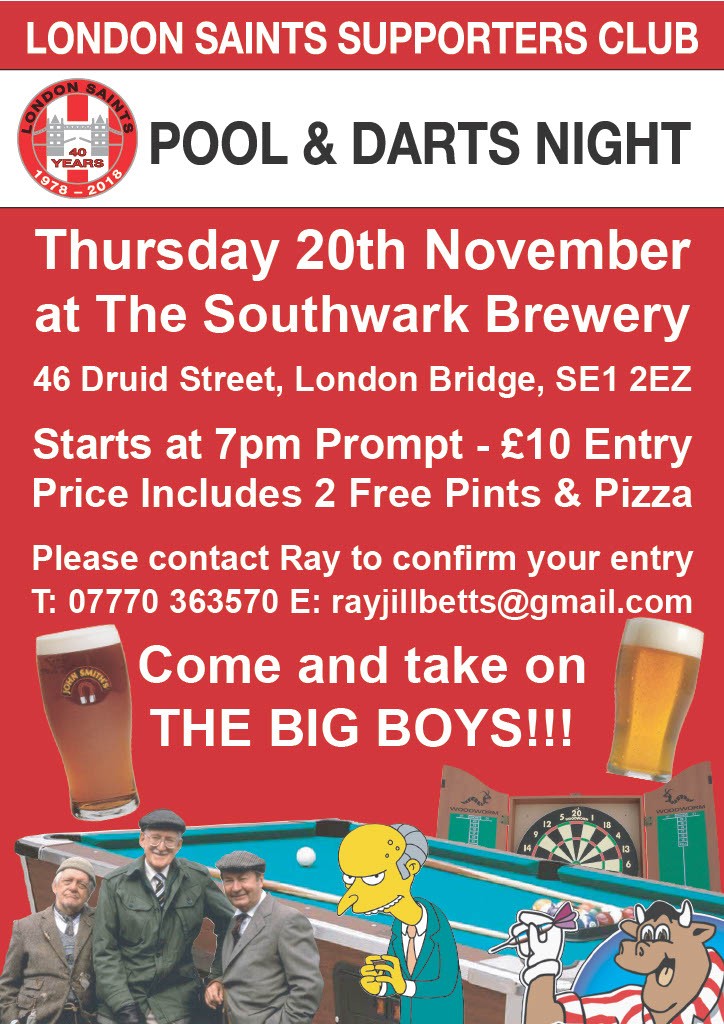 2025 Pool & Darts night Thursday 20th November 2025