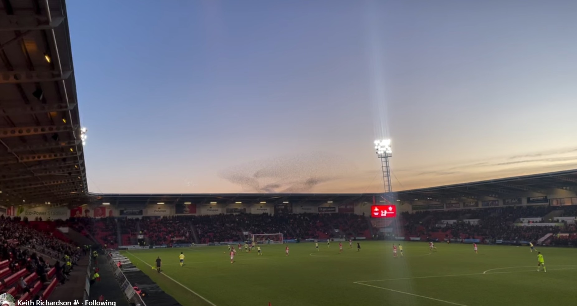 Was it really 50 years ago that Hughie Fisher scored the most important goal of the 75-76 F.A. Cup campaign, a late equaliser at The Dell to force a 3rd round replay against Aston Villa? It certainly was, and Saints marked the occasion with a Cup Final replica shirt in this year’s 3rd round tie at Doncaster – you too can get one for just £120! On the remarkably unfrozen pitch there was a debut in goal for Daniel Peretz behind a back four as Jelert and Welington returned. Donny are 23rd in League 1 and were not expected to provide much of an obstacle, and certainly not after Saints took an early lead: Bragg went forward purposefully and fed Matsuki whose shot was saved – Bragg continued his run to put away the loose ball. It was 2-0 after 24 minutes when Archer‘s shot took an obliging deflection that sent the ball over Lo-Tutala before dipping below the crossbar. Just before the break, Fellows got to the by-line and dinked over a cross that was met by unmarked Matsuki with a header that he could guide past the keeper. At the start of the second half, most away fans’ attention was drawn more towards a spectacular murmuration of starlings gathering in the winter evening’s sunshine over the South Stand and didn’t see much of Doncaster’s opener, a close range header by centre back Pearson from a corner. Peretz had shown himself willing to come for crosses in the first half, not always wisely, and may have been told to stay more at home, as we are used to. We’re also used to goalkeeping failures, and Peretz will need to explain how Gibson‘s shot did little more than trickle past him to make it 2-3 with over 30 minutes to play. Some Saints fans responded not by getting behind the team but suggesting that the board should effectively sack themselves. The board weren’t playing, and nor were some of our regulars, a situation changed by bringing on Wood (and moving to the usual defence), Scienza and Jander, plus Stewart who, for all his known fragility, provides a welcome physical presence up front. Stewart might have embarrassed Lo-Tutala with an opportunist goal but it was our goalkeeper who made the final significant contribution with an outstanding double save, the second from our old friend Billy Sharp.
