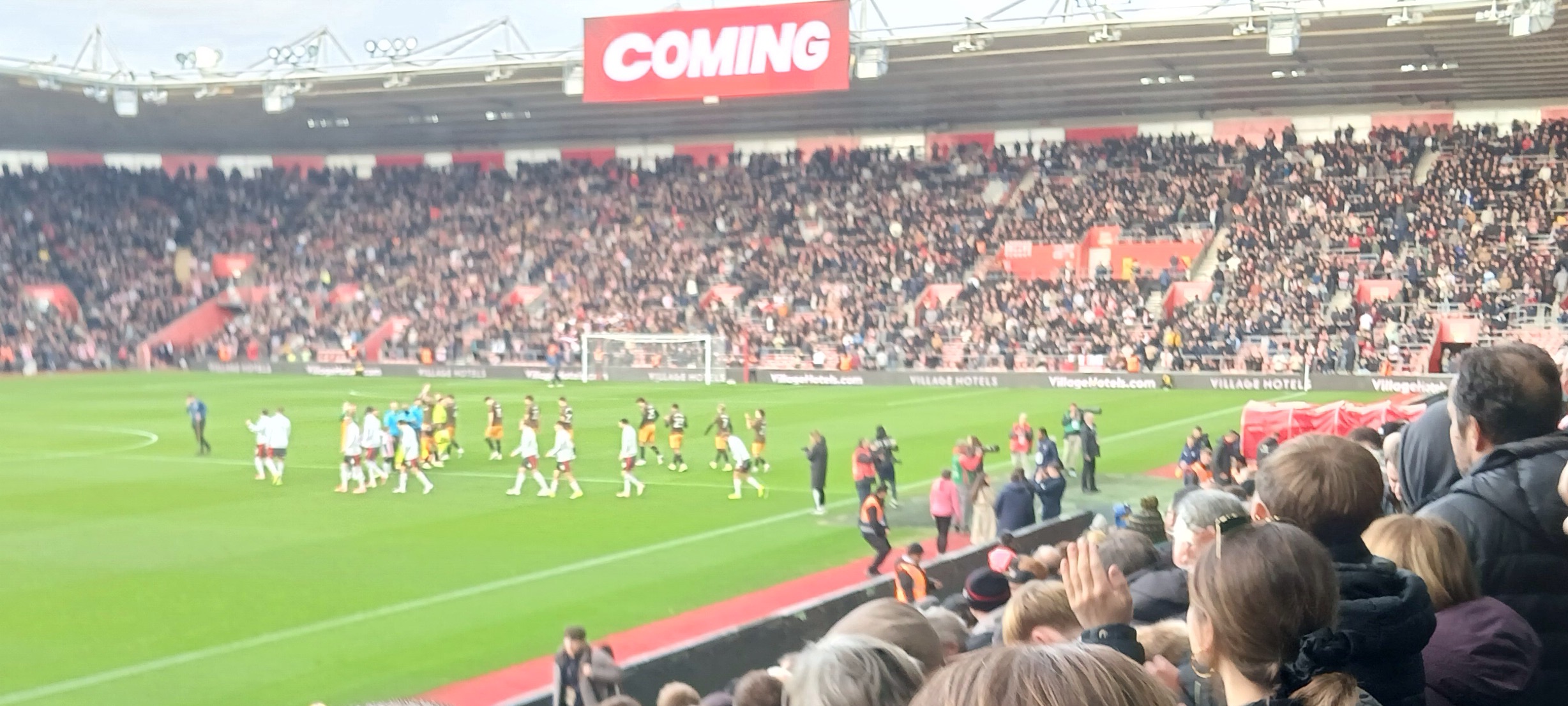 Tonda reverted to his favourite set-up in the selection to face Hull, although Bragg was unavailable and Bazunu was now at Stoke. Saints usually start well and this game was no exception, only Armstrong and Azaz couldn’t take advantage when twice played into promising positions down what we used to call the inside right channel. What we do when an early goal doesn’t arrive is more problematic and it doesn’t help when a fragile defence manage to give a goal away. That was certainly true in this game, and it was a spectacular error that set the visitors on their way: Quarshie passed to Manning and Manning passed back in the general direction of Quarshie, but too close to McBurnie who intercepted; both players were at fault but on a good day they would have been rescued by Peretz’s valiant attempt to save, only this wasn’t a good day and the loose ball fell to Joseph who finally scored. The goalkeeper had earlier made a good save (albeit one for the cameras) but he didn’t cover himself in glory as Hull scored a soft second. This was from a corner where Hughes won a far post header over Wood far too easily and somehow the ball gently found its way into the net. Our centre backs seem more effective at scoring from our corners than keeping out the opposition at their end: Hardwood-Bellis had earlier bundled the ball against the post from a set piece. When an almighty scramble had ensued from another deep cross surely one of our players should have taken advantage? We know how our team play, and a lot of fans don’t like it, especially wanting a bit more urgency when we’re behind – which only means that perhaps the most impatient and intolerant bunch of supporters around get on the players’ backs. They were given some hope with the introduction of Stewart, and maybe a reversion to an orthodox back four helped. We did get a goal as well, neatly turned in by Stewart from Scienza’s cross-cum-shot, and there was plenty of time to get a second against injury hit opponents who surely didn’t have much left on the bench. Alas, though, you knew the game was up when we were reduced to bringing on Archer.