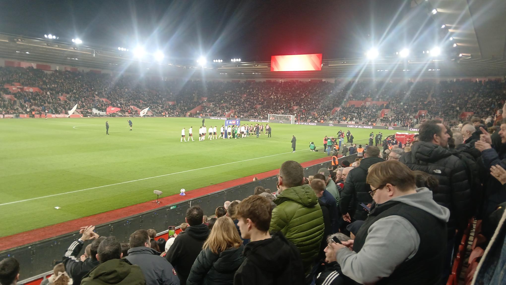 Frailer bodies were rested for the second of three games in eight days: Stewart (obviously), Charles and Fellows (but he may have simply been dropped). Opponents QPR sported a striking kit of pink and black halves, quite similar to Dulwich Hamlet’s famous outfit, and they had a defence that wouldn’t have been out of place in the Isthmian League either. Rangers were good enough on the ball, but their fans would have found concern with the space given to Azaz as he curled a shot inside the post after ten minutes. What followed for the next 35 minutes was also worrying for the home support as the visitors enjoyed plenty of possession, although always liable to concede at any moment, such as when Harwood-Bellis headed against the post from some distance. A more decisive moment did come in first half added time: credit Scienza for a well delivered corner and Matsuki for a fine jump to get in a decisive header, but he was unmarked (OK, we know from our own experience that Edwards isn’t going to do much marking) and goalkeeper Walsh certainly shouldn’t have let Matsuki get in front of him. Walsh’s evening wasn’t going to get any better as Matsuki scored again soon after the restart, this time with a fine first-time finish after Walsh had palmed Scienza’s shot out to him. Matsuki was in the action again when he chased a long ball into the penalty area, one that he probably wasn’t going to reach, although while a defender’s body check would have earned praise in the Super Bowl, it was hardly legal in proper football. 3-0 would have been a highly satisfactory outcome anyway, but Scienza had other ideas on the break as Walsh this time pushed a shot onto the post, but still into the net (to be honest he should have done better); also of note was Larin’s surprisingly quick lung busting run to be available for a cross that didn’t come – the Canadian promptly collapsed before being helped to his feet to join in the celebrations. The nap hand wasn’t far away either, as Esquerdinha made a mess of clearing a cross and Bree was able to fire past Walsh who this time was more beaten by a handy deflection on the way. Still 20 minutes to go, but both sides seemed to play them out with one eye on the weekend’s fixtures, and no-one in Southampton’s colours was complaining anyway.