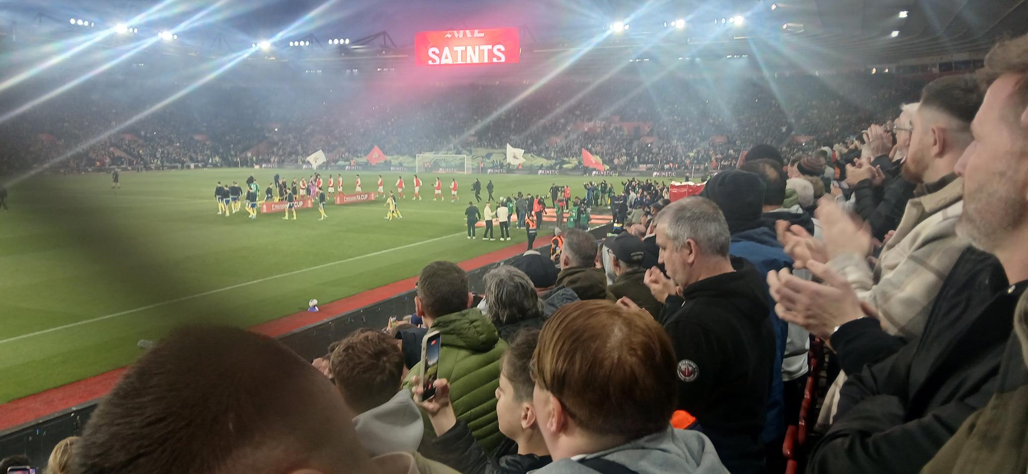 If they were taking a wider view of the season, neither Southampton nor Arsenal would have wanted an Easter cup tie, but, whereas the Gunners were viewing it as an irrelevant irritation before a European game, Saints needed a win to keep their long unbeaten run intact. Team selections tended to support that view, anyway, as the Arsenal squad system was called into play whereas Saints were only without Downes (suspended, again) and Stephens (doesn’t play in cup matches) plus Charles, benched after a difficult international week – it all led to surprise returns for Stewart and Scienza. A Premier League elite squad is still pretty tasty, of course, and you feared for our team as the visitors mounted a five man press in the opening seconds. Southampton weren’t fazed and were happy to play it their own way, with Scienza and Fellows causing trouble down the flanks, where, in truth, schoolboy sensation Downing and scourge-of-the-Saints Martinelli were supposed to wreak havoc. Scienza managed to break clear after a Peretz punt and chose to take the ball round the keeper but Mosquera was quick to get back to clear. Never mind, as a diagonal run by Scienza seemed to pull the visiting defence out of shape; Bree’s cross should still have been comfortably headed clear by White, somehow he managed to miss it completely instead and Stewart was able to compose himself before slottting the ball past Kepa. Hardwood-Bellis had managed to head an apparently goal-bound shot out of harm’s way and we still had a number of Arsenal’s notoriously fiendish corners to deal with, but the first half was about as good as anyone could have hoped. The second period was going that way as well, and would have been even better if Fellows hadn’t blazed over a fine opportunity or had Scienza’s shot found the net instead of the bar, with Kepa beaten. With a couple of Arsenal changes and no activity from our bench , Saints then began to look tired, and it may have been tiredness that led to a sloppy equaliser when Bragg failed to cover Havertz with Bree asleep somewhere; Havertz’s cross was tucked away by Gyokeres. Off went Bragg (who had otherwise done a great job), Stewart and Scienza, and on came Charles, Larin and Edozie. Fears that Arsenal would now blow Southampton resistance away were unfounded but clearly neither side wanted extra time. There are a couple of ways to avoid that, and Saints chose the better one: a delightful move down the right finished with a strong run by Fellows, a neat pass and just as neat a finish by Charles. The four minutes of normal time and an expanding six added were marked by cheers for every missplaced pass and every off target Arsenal shot, and every Peretz save, no matter how mundane, before it was Saturday party night in Southampton.