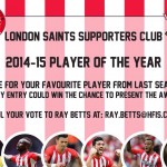 London Saints player of the year Result Total of 40 votes cast with the clear winner being Jose Fonte with 22 votes. Runner up with 5 votes was Pelle with Mane getting 4, Bertrand 3, Forester and Morgan 2 each and finally Toby and Victor with 1 each. So captain Jose deservedly romps home with […]